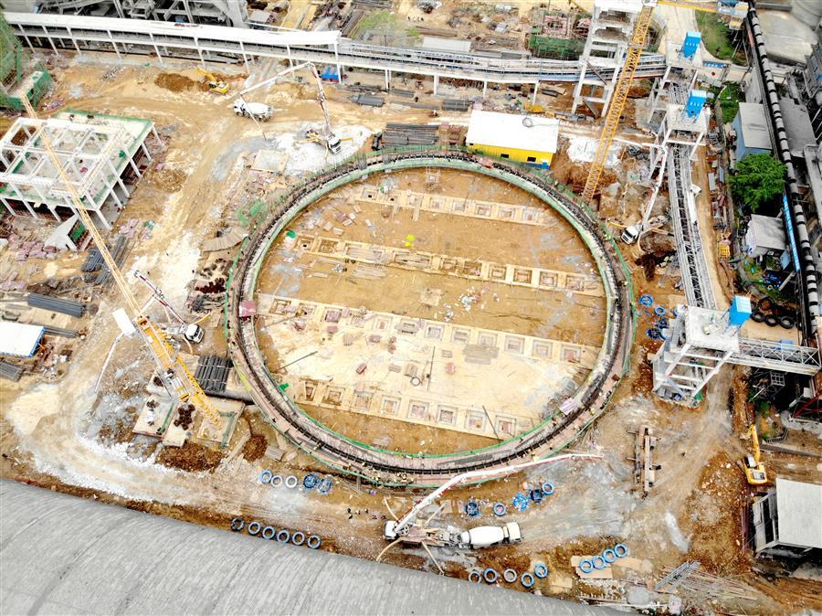 “開(kāi)始澆筑!”3月15日下午2點(diǎn)40分,隨著魚(yú)峰水泥技改項(xiàng)目總負(fù)責(zé)人的一聲令下,4臺(tái)混凝土泵車和混凝土攪拌車準(zhǔn)時(shí)就位,4臺(tái)天泵同時(shí)啟動(dòng)澆筑。這標(biāo)志著項(xiàng)目熟料庫(kù)的筒體滑膜施工正式啟動(dòng),并以每小時(shí)10厘米的速度向上滑升。項(xiàng)目部開(kāi)足馬力、鉚足干勁,迅速掀起“奮戰(zhàn)一季度”新一輪項(xiàng)目建設(shè)高潮。