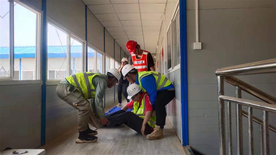 活動(dòng)過程中,分公司經(jīng)理在項(xiàng)目部會(huì)議室向大家講解消防、觸電安全常識、應(yīng)急救援等相關(guān)知識點(diǎn),并播放了相關(guān)教學(xué)視頻。項(xiàng)目安全總監(jiān)介紹了滅火器材的使用,并組織進(jìn)行實(shí)地滅火實(shí)物操作演習(xí)。分公司管理人員、項(xiàng)目管理人員和從業(yè)人員分別進(jìn)行了觸電應(yīng)急救援,火災(zāi)人員疏散,滅火器、消防水槍使用演練。