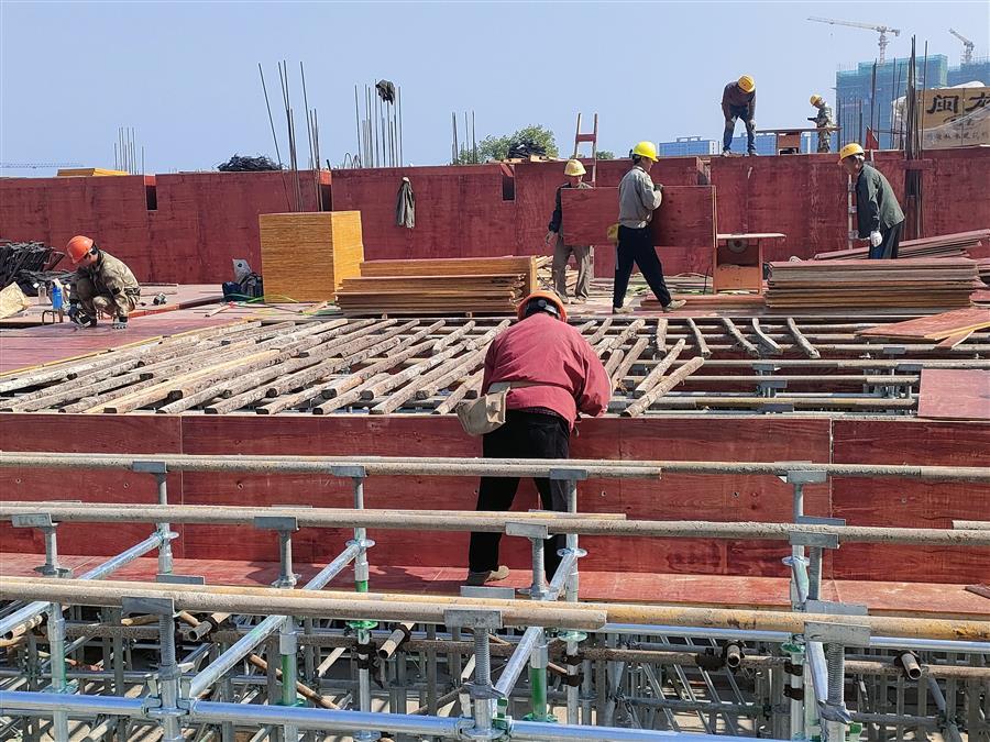 目前,該項(xiàng)目13、15#樓一層結(jié)構(gòu)澆筑完成,二層結(jié)構(gòu)鋼筋綁扎施工中;1、4、8#樓地下一層結(jié)構(gòu)澆筑完成;9、14#樓(人防)筏板澆筑完成,地下結(jié)構(gòu)鋼筋、模板、外架工程施工完成;2、3、5、6、7、10、12#樓筏板澆筑完成,地下一層墻柱鋼筋綁扎施工中;地庫(A1-6、A13-14)底板鋼筋綁扎完成,筏板澆筑完成,累計(jì)完成產(chǎn)值約3240萬元。
