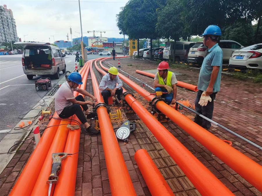 鹿寨縣城南新區(qū)城中村改造項目設(shè)計-采購-施工(EPC)總承包項目,工人正在對室外道路鋪設(shè)瀝青。