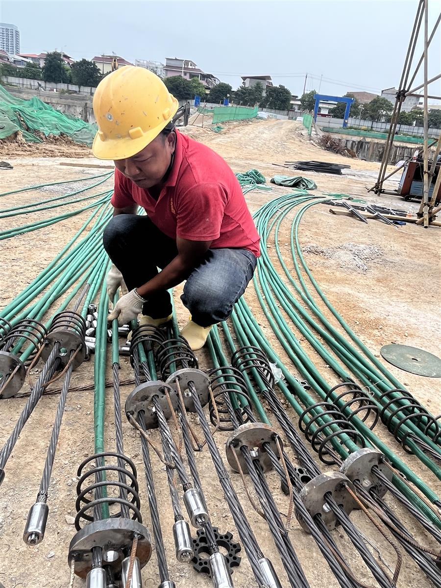 貴港市棚戶區(qū)改造(三期)白凹窩安置區(qū)項目B2標(biāo)段項目,工人正在進行壓力型預(yù)應(yīng)力抗浮錨桿加工。