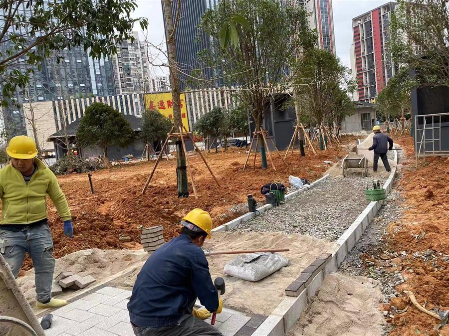 為如期實(shí)現(xiàn)建成目標(biāo),項(xiàng)目部積極協(xié)調(diào)各方力量,科學(xué)合理安排工序,在保證安全生產(chǎn)和施工質(zhì)量的前提下,全力加快推進(jìn)項(xiàng)目建設(shè),爭(zhēng)取早日完成地面部分工程,達(dá)到開(kāi)放條件。截至目前地下室框架已完成,室外給排水管道完成95%,路面路基整形完成100%,園林綠化完成80%,出入口裝飾裝修完成80%,地面鋪裝完成80%。