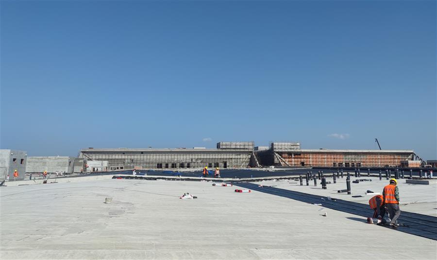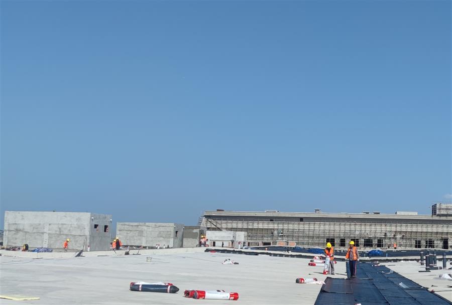 走進(jìn)50Gwh鋰電池產(chǎn)業(yè)基地(新能源電池標(biāo)準(zhǔn)化廠房)一期項(xiàng)目施工現(xiàn)場(chǎng),機(jī)器轟鳴,工程車(chē)來(lái)回穿梭,施工人員忙碌作業(yè),水電消防安裝、屋面防水卷材鋪貼、內(nèi)外墻抹灰、門(mén)窗窗框安裝、抗裂砂漿和室外管網(wǎng)路基施工等工作緊張有序地進(jìn)行中。為應(yīng)對(duì)項(xiàng)目體量大、工期緊的情況,項(xiàng)目部緊扣節(jié)點(diǎn)目標(biāo)掛圖作戰(zhàn),逐項(xiàng)細(xì)化分解工程量,量化任務(wù)清單,制定日工作進(jìn)度表,錨定目標(biāo)精準(zhǔn)發(fā)力,做到畫(huà)“圖”定責(zé)、按“圖”推進(jìn)、看“圖”指揮,實(shí)現(xiàn)以日保周、以周保月、以月保季,確保了目標(biāo)任務(wù)按序按時(shí)推進(jìn),曾以不到5個(gè)月的時(shí)間實(shí)現(xiàn)了項(xiàng)目包含的15個(gè)單體工程全面封頂。