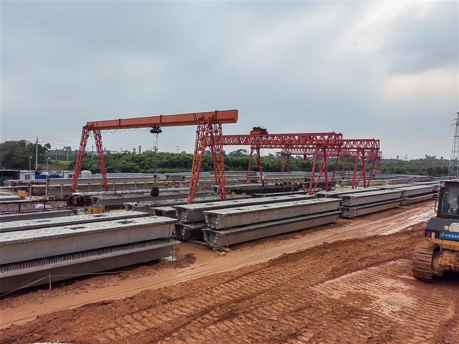 在施工現(xiàn)場(chǎng),20多臺(tái)大型設(shè)備在不同時(shí)段連續(xù)配合作業(yè),運(yùn)輸車(chē)輛有序進(jìn)行運(yùn)土填筑路基、材料進(jìn)出場(chǎng),100多名項(xiàng)目管理人員及工人分為預(yù)制梁場(chǎng)、樁基施工、橋梁下部結(jié)構(gòu)等班組全線鋪開(kāi),在各個(gè)作業(yè)點(diǎn)上有條不紊地開(kāi)展施工作業(yè)。